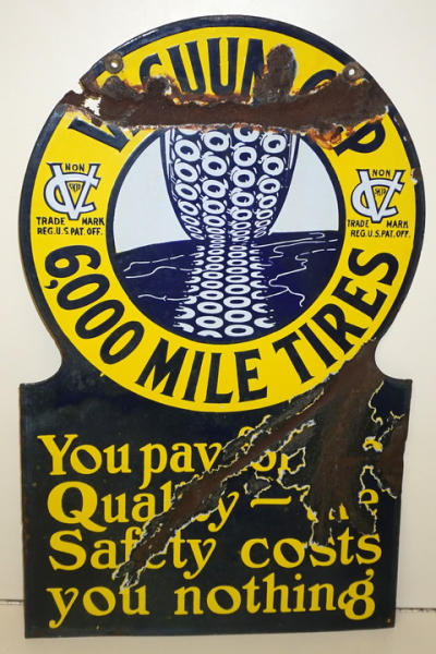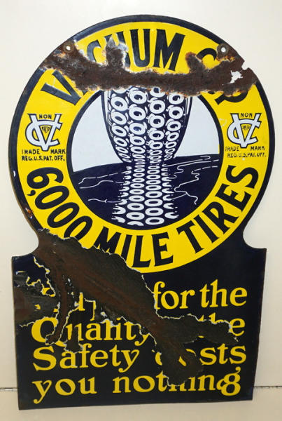 15"x23.5", great graphics, but very heavy wear, was bent at one time; far from perfect, but a desirable sign