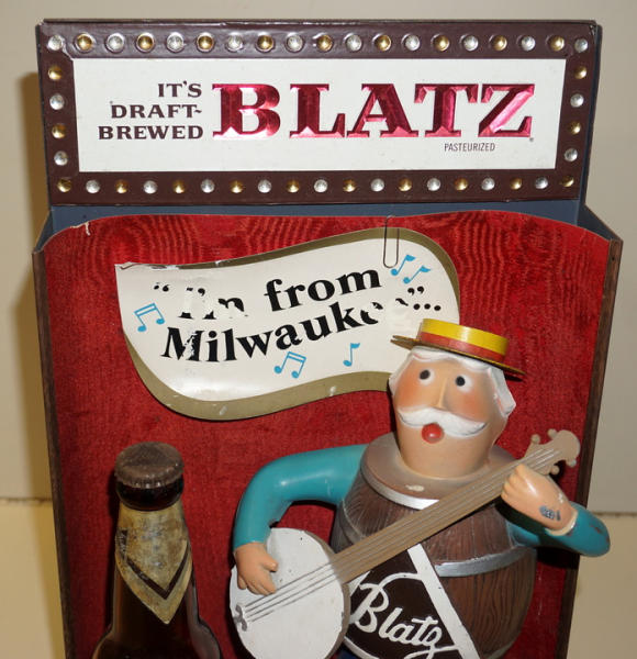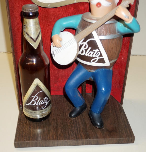 18" tall, 10" ide, metal man, real beer bottle, non-lighted variation, some general wear