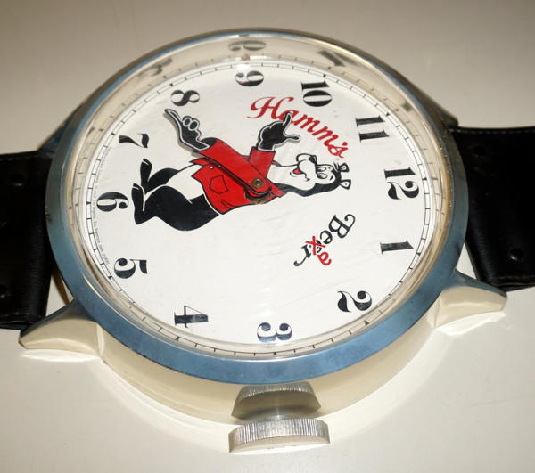 about 3' tall, designed to hang on the wall, but looks like a watch, light wear, but better condition than most we have seen