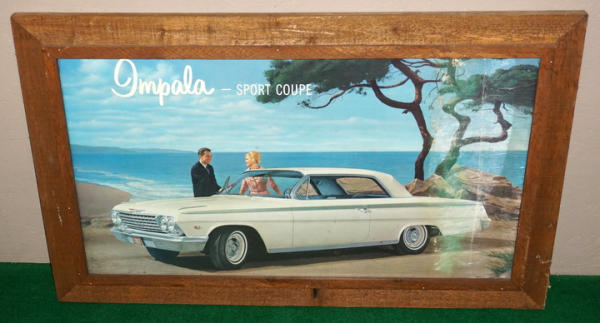 has some water damage on the right side, still pretty nice, in a rough-cut frame, 23"x37"