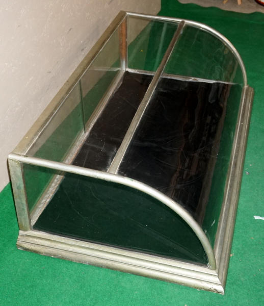 nice original, as-found, good glass, 25" deep, 45" long, about 13" tall, glass back doors; no shipping, local pickup only