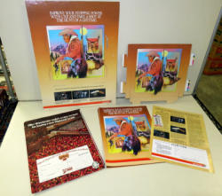 appears to be all there; was a signup to win prizes; neat piece; cardboard stand up is 16"x12"