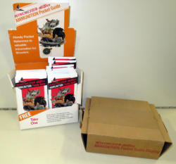 has approx. 50 brochures; great graphics; has some damage to the cardboard display; original box; probably out of the 80's; display is 13" tall