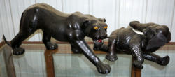 both could use a cleaning; not sure what's it's made of, not wood or plastic; maybe a resin; Panther is 32" long; sell as a set