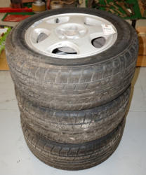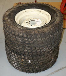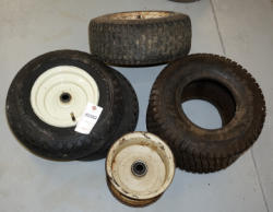 one new 18x8.50 Tire, some used rims and tires, all to go