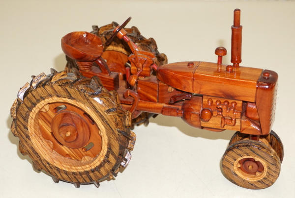 nicely made, don't know who made it, several different kinds of wood, about 1/16th scale neat piece
