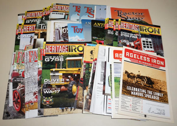 Heritage Iron, Tractor Shop, Farm Collector & more, some duplicates, about 1/2 a banana box full, all to go