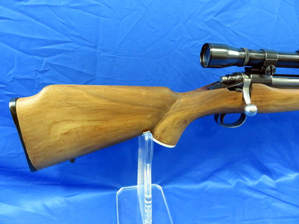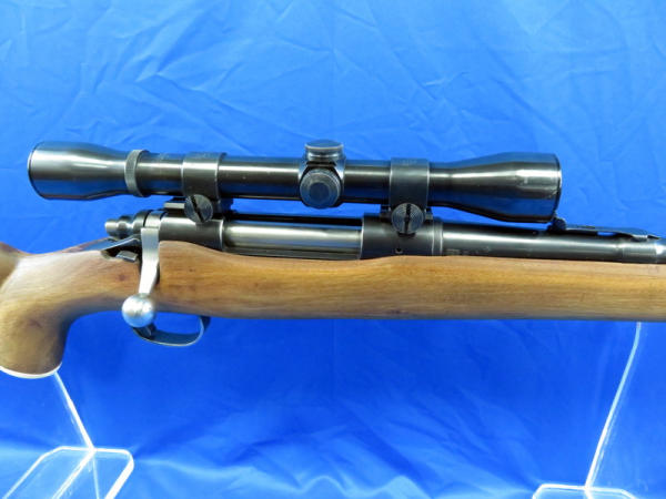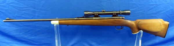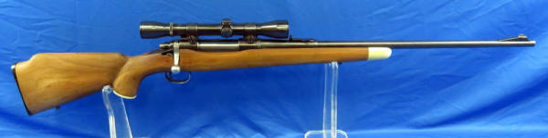24" Bbl.: smooth action; custom made walnut stock is very nice, no high gloss finish. Weaver K-4 scope is nice and clear; SN#399594