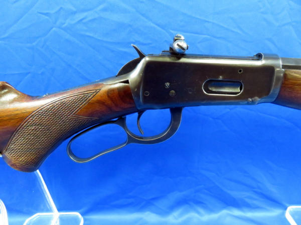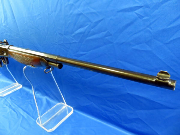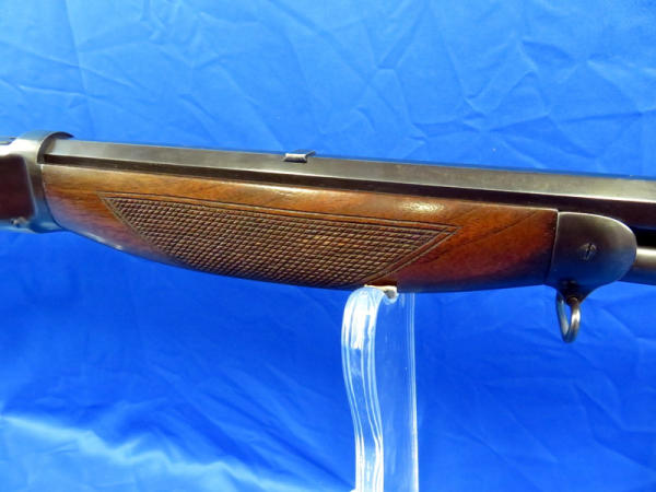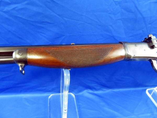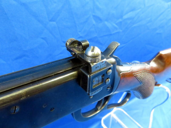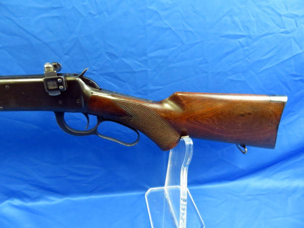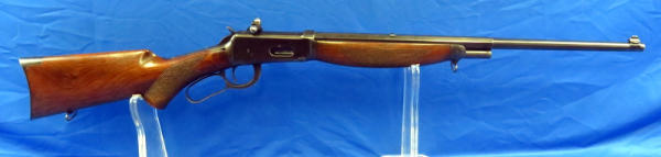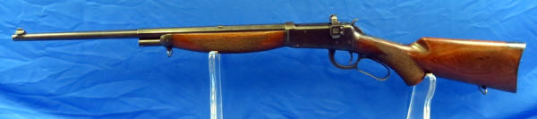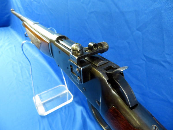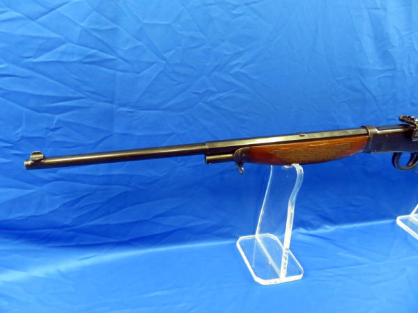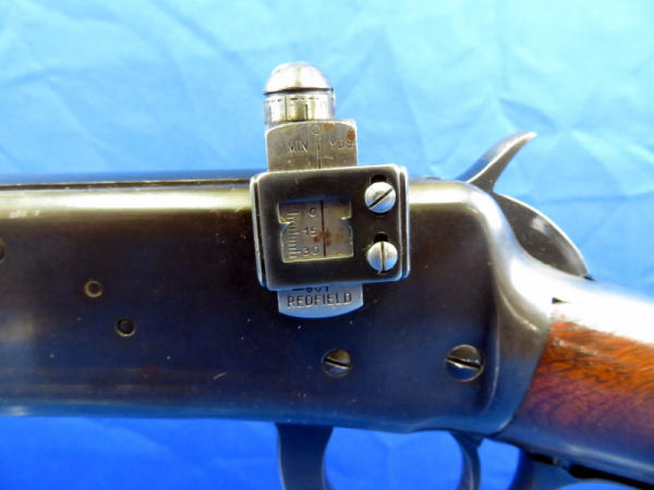 21.5" Oct. to Round Bbl.; Redfield adjustable peep sight; has thick round forearm; checkered stock; 1/2 round receiver tube; action catches alittle; overall very nice condition and unique variation; SN#954357
