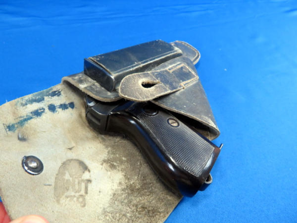 Waffen Amp marked above grip; 3.75" stainless barrel; has some finish loss; plastic grips; 2-clips; period correct holster; no import marks; SN#378912