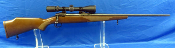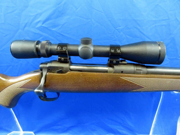 22" Bbl.; barrel has some field scratches; wood is solid and overall nice shape; action is smooth; Simmon Whitetail Classic 3.5-10x40 scope is nice but needs lenses cleaned; SN#F012678