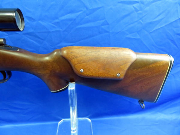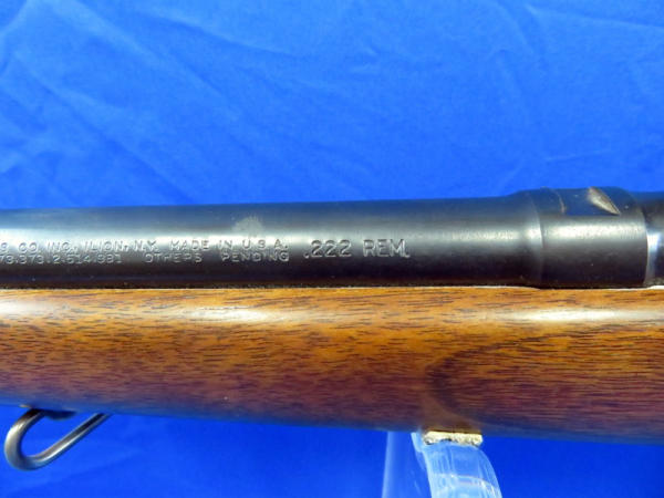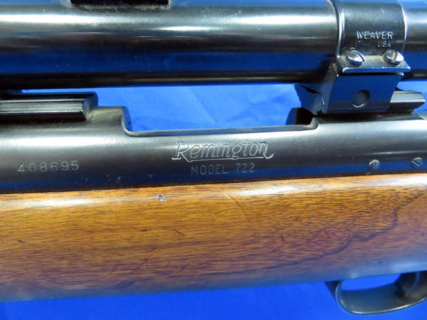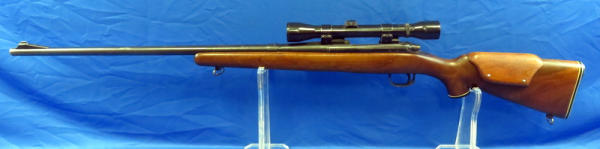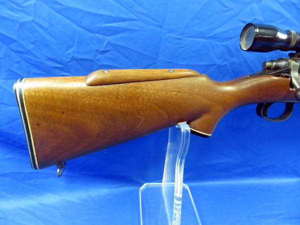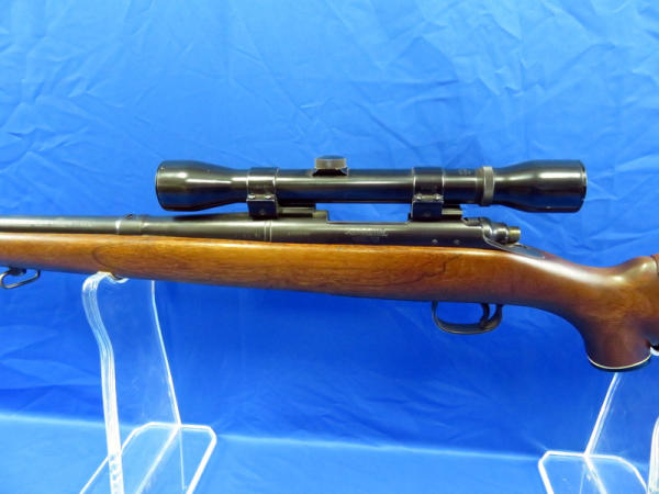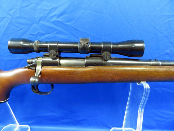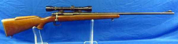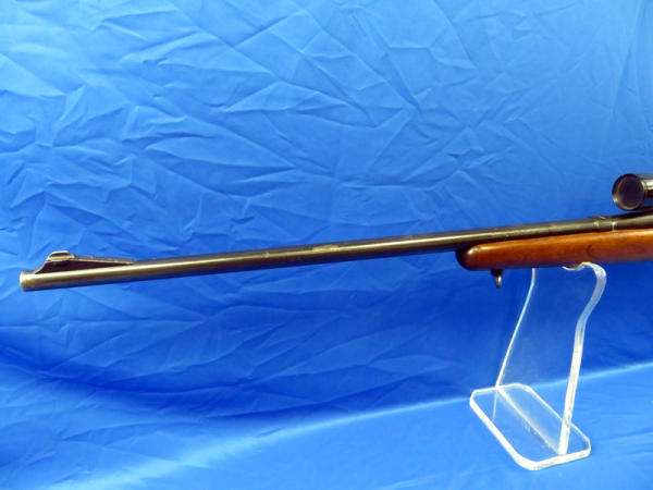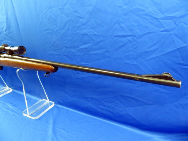 26" Bbl.; bluing has a few spots of surface rust; wood is solid and has added cheeck rest screwed on; Weaver Marksman 4x scope is clear but needs cleaned; action is alittle gummed up; SN#408695