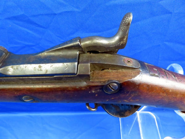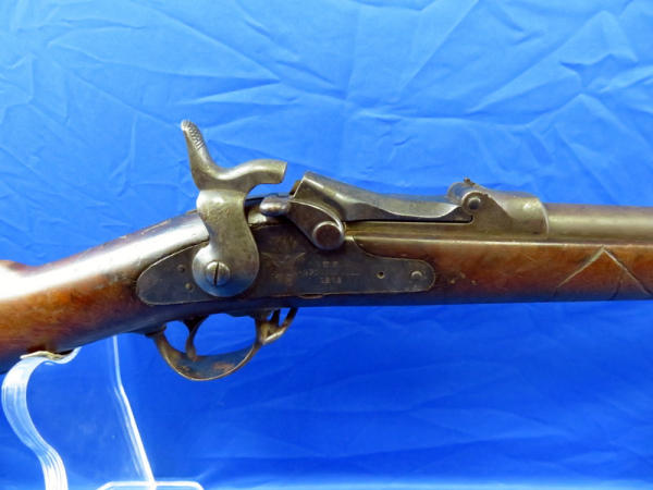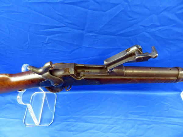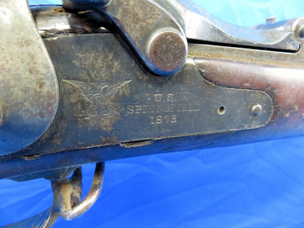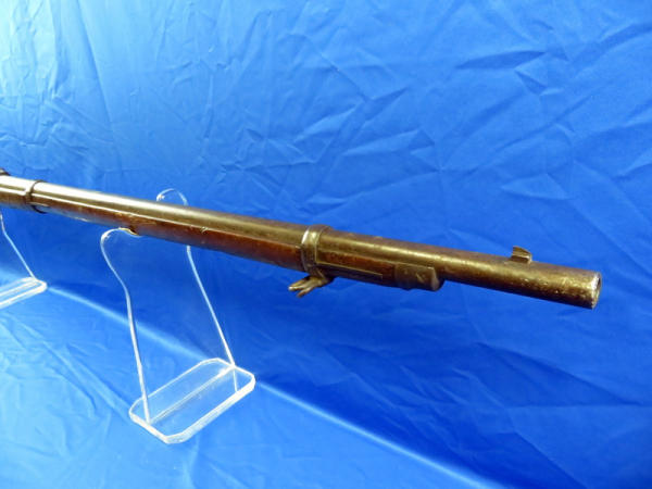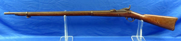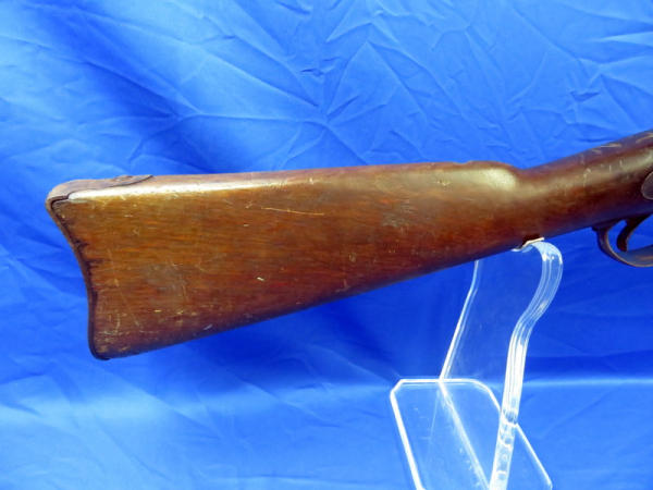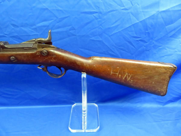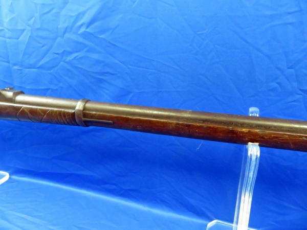32" Bbl.: open mech is good; stock has damage and hand carving; modern deck screw on top tang; spotting & rusting on bluing; no rear sight; no SN#; no FFL transfer required