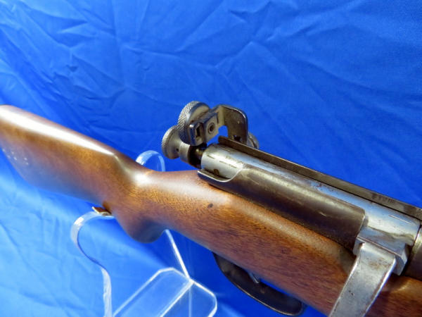24" Bbl.; action good; rear peep sight; missing rear sight on barrel; wood is solid w/good finish; bluing is thin; no SN#