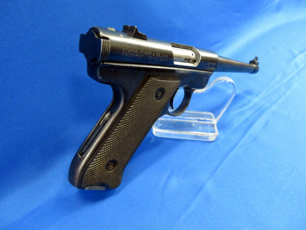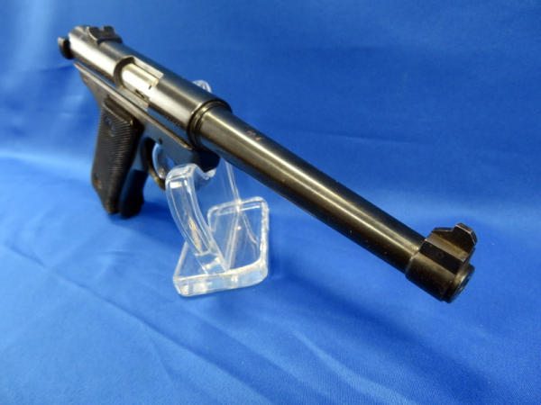 believe probably a Mark edition, but no model marked on gun; 6" Bbl.; hard rubber checkered grips; minor finish loss but overall nice shape; SN#413373