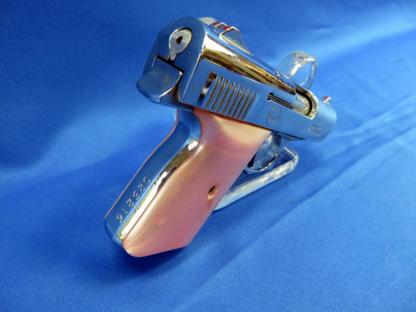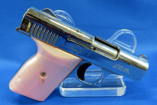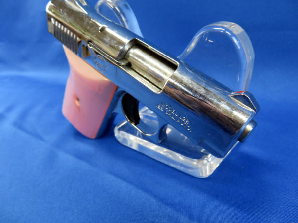 2.5" barrel; nice nickel finish; pink mother of pearl imitation grips; missing clip; SN#025216