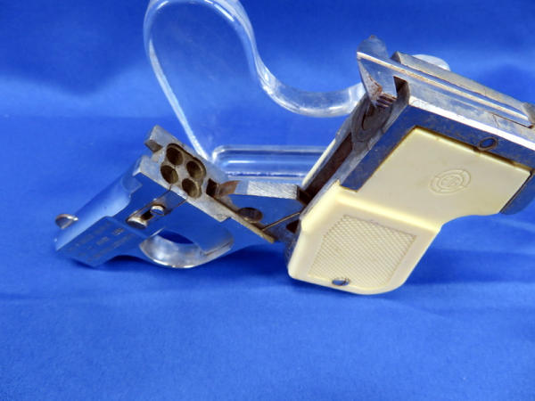 2.5" barrels; scissors open; plastic grips; has some wear; neat gun that we haven't seen; made in Italy; SN#14237