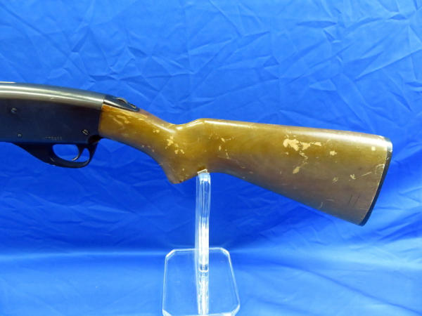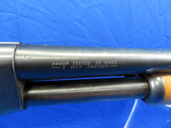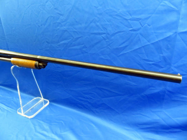 28" round Bbl.: action is alittle tight; wood is solid but has spots of finish loss; bluing has some minor loss spots & spotting; 3" chamber; MC; SN#A775266