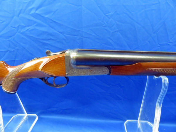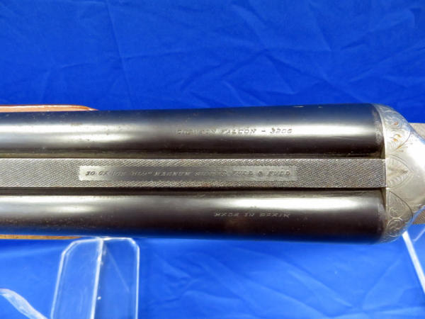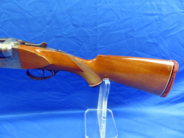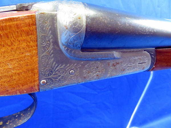 made in Spain; 32" Bbl.; easy break action; minor spotting on barrels; wood is solid w/a few field marks; butt pad is dry; two triggers are rusty; engraved nickeled receiver has some spotting; 3.5" Magnum Chamber; FC on both; SN#74986
