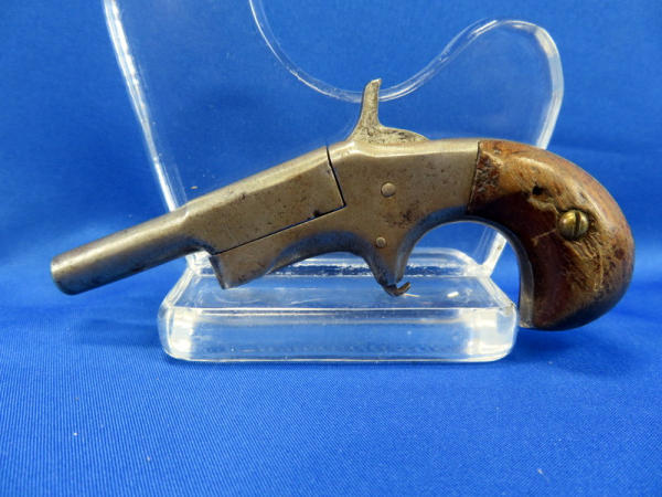 no maker or model; 2.5" Bbl.; barrel swings to the side to load; wood grips; spur trigger; SN#172