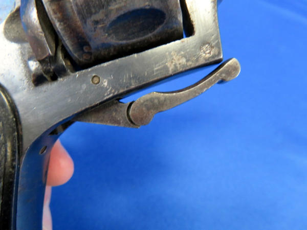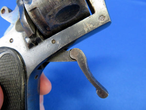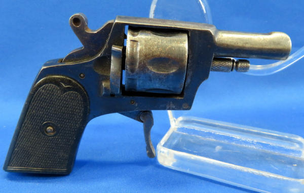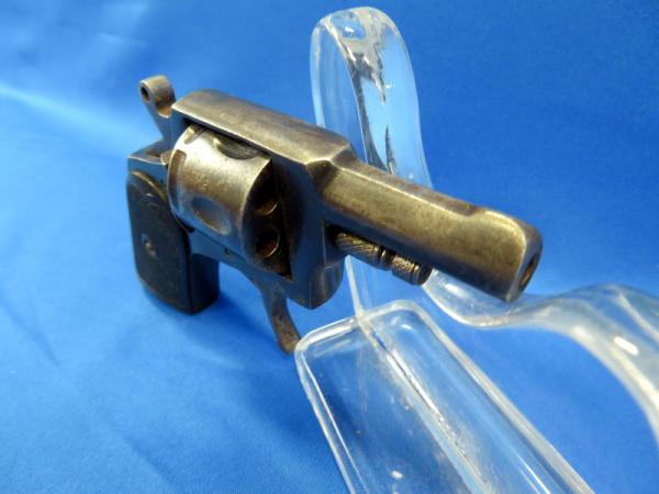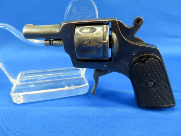 unknown make & model; marked "F" on frame; hard rubber checkered grips; folding trigger; 1-7/8" Bbl.; has wear; SN#28 marked on cylinder