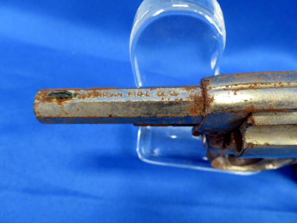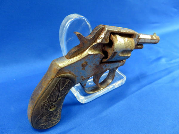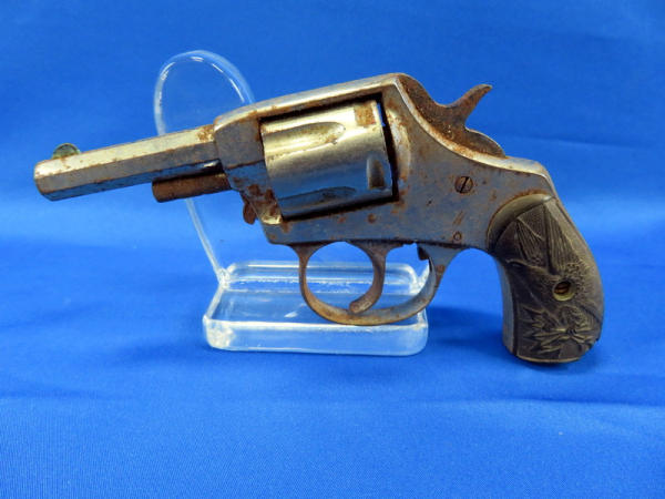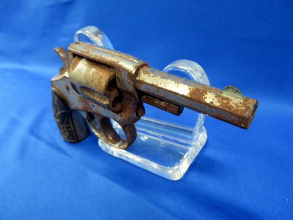 gun is rusted & seized up; 2.5" oct. barrel; nickel plated; grips have break on bottom; heavy wear; no SN#