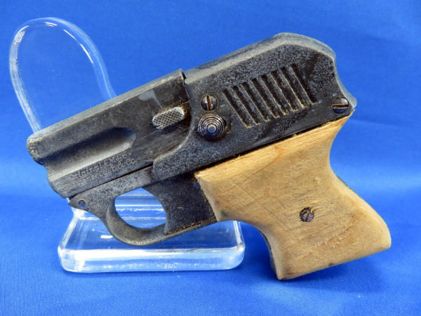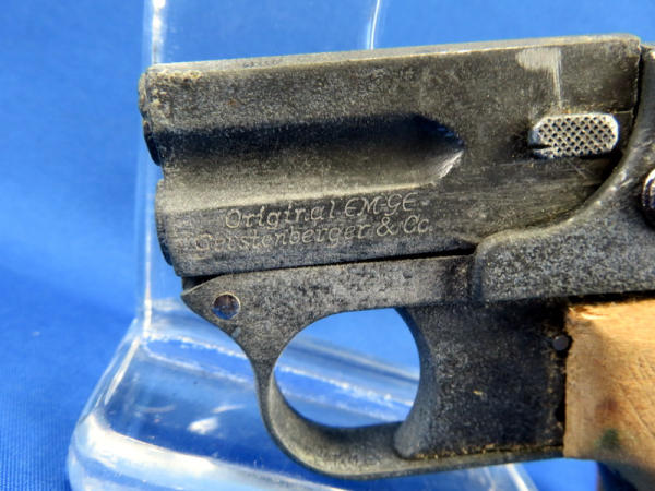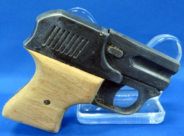 Maker is hard to read - "Original MGE?"; believe .32cal; has homemade wood grips; heavy wear; no SN#