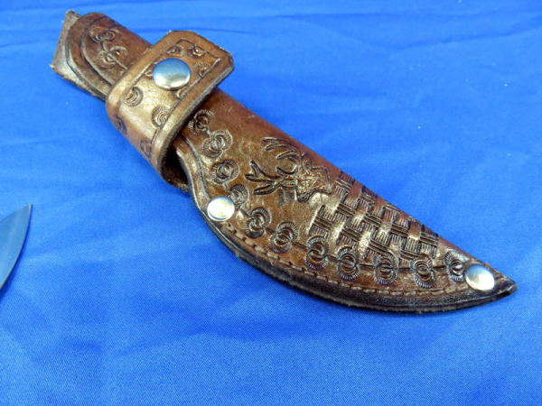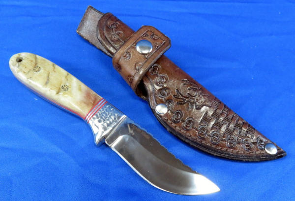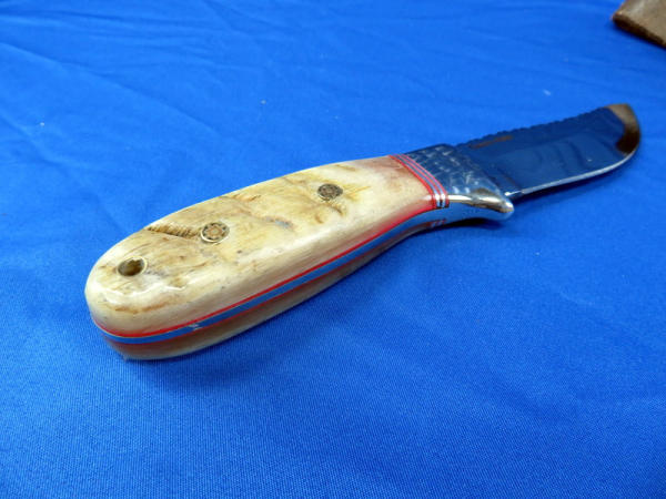 3.25" blade; Marella Sheep Horn handle; handmade leather sheath; great look; Mr. Klein is a custom knife maker from Sioux Falls, SD