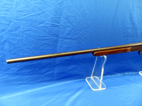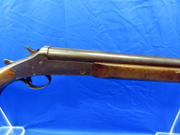 30" round Bbl.; easy break action; bluing thin on receiver; wood is solid, has a chunk missing on bottom of stock; FC; no SN#