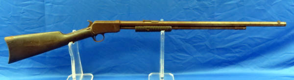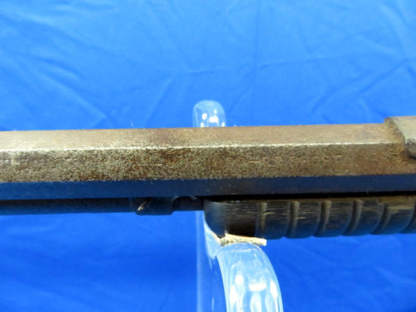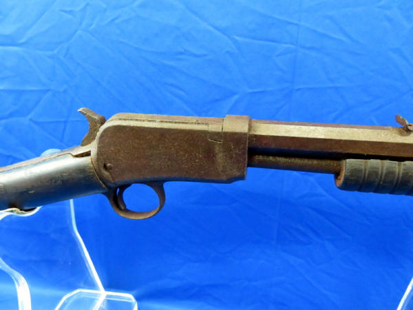 completely rusted shut; has heavy damage; 24" oct. Bbl.; hammer, trigger, slide action is all seized shut; SN#605485