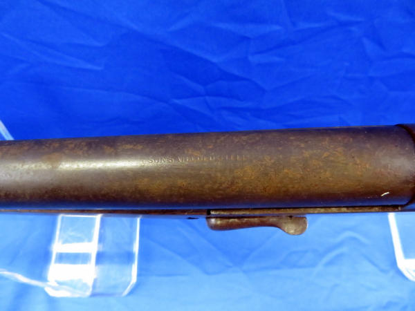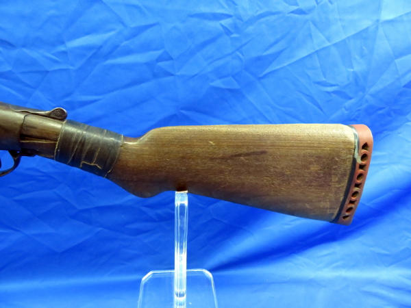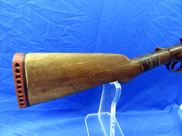 can't read the Maker or Model; opens easy; stock has damage and has been taped; 32" round Bbl.; no SN#