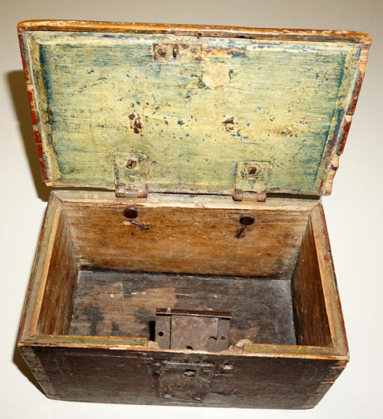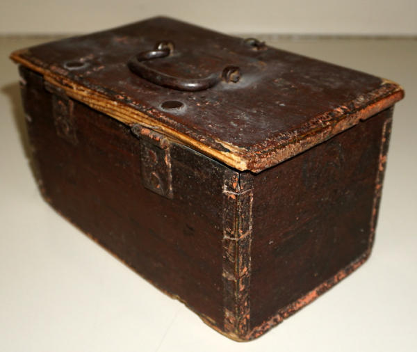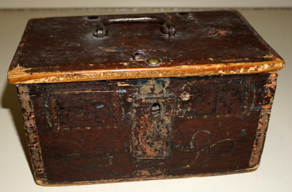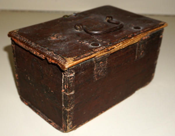 8"x5"x5", missing part of the log, iron handle, comes with a hand written note on who it belonged to, neat piece