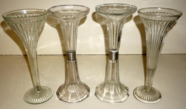 all 12" tall, 2 styles, one wrapped w/ silver has a large chip, sells 4x the money
