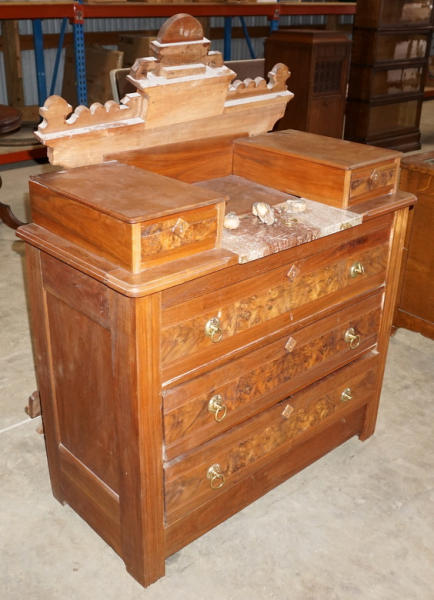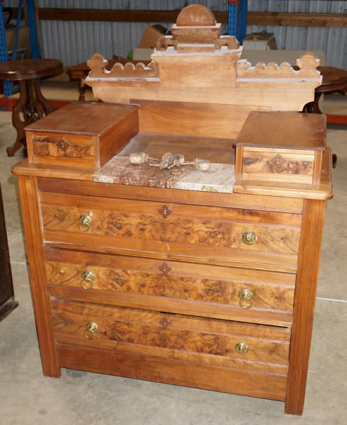 very nice, looks to have been refinished at one time, missing a ring on the hardware, we took the mirror off to move