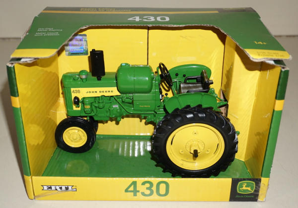 Larry Jordan High-Quality Farm Toy Auction 15 Ohio Street, Wakonda, SD 57073 4-wheel Drives, Cast Iron Vindex & Arcade, Old Toys, Customs, good modern toys & more! All from the Larry Jordan Collection of Hutchinson, KS Catalog | Terms of Auction | Print Catalog Catalog | Terms Back to Catalog #1125 – JD 430 LP nf Dealer Edition NIB More Details NIB Location: 15 Ohio Street, Wakonda SD, 57073 High Bid: $45.00 – scottrc bidding history Bidding has closed on this lot Back to Catalog