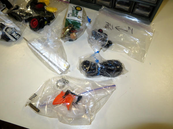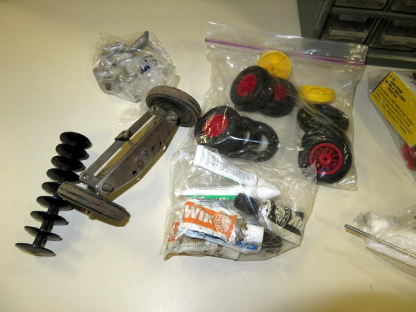 a lot of parts, includes wheels & pins mostly; sell for one money