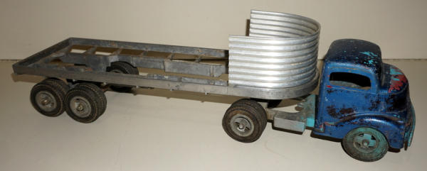 several layers of paint on the cab, no floor in the trailer, good piece to restore or customize