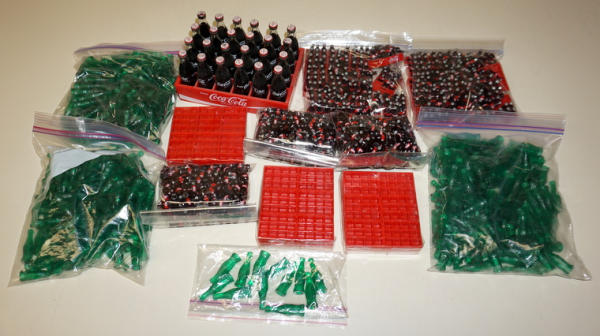 some plastic, some glass, various sizes, largest bottles are 3" tall, all to go