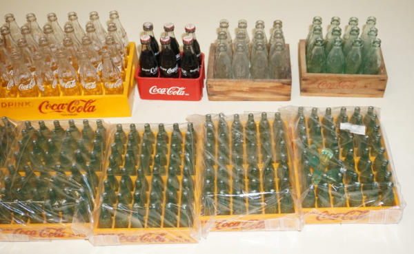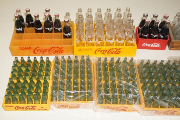 some plastic, some glass, various sizes, largest bottles are 3" tall, all to go