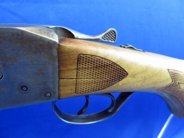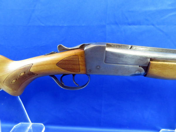 26" barrel; bluing has been all buffed off; stock has a crack on left side of receiver; easy break action; 3" chamber; both FC; 2-triggers; SN#A408227