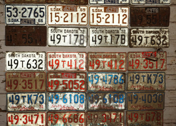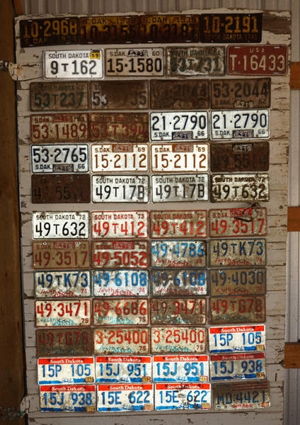 mostly 1960's & 70's, some sets, some OK, most are used, several truck plates too; all mounted to a original barn door for display, all to go for one money