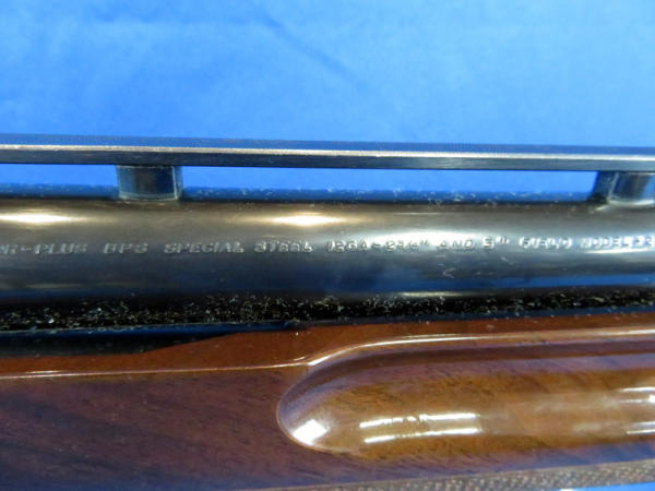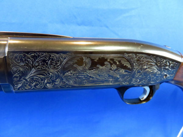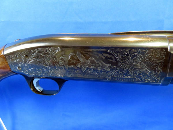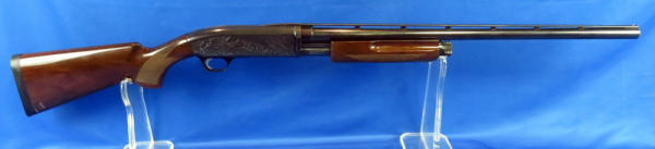 26" Vent-ribbed Bbl.; factory engraved receiver; great gloss to bluing & wood; has some scuff marks on bottom of stock near butt pad; bottom eject; smooth action; gold trigger; nice gun! Made in Japan; SN#18219NW152
