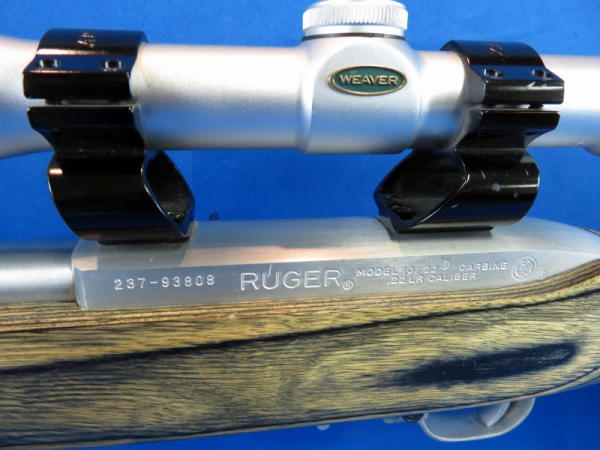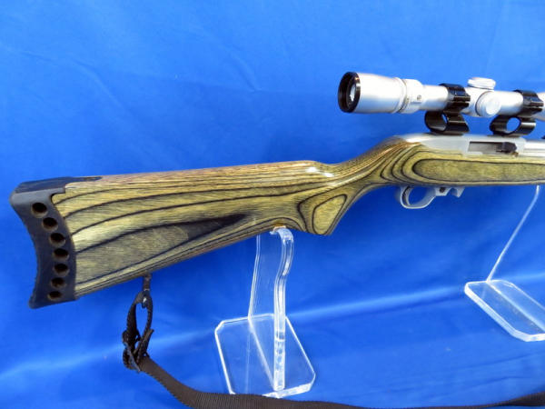 18.5" stainless barrel; wood grain laminate stock; NO clip; sling; Weaver Classic scope is clear; SN#237-93808