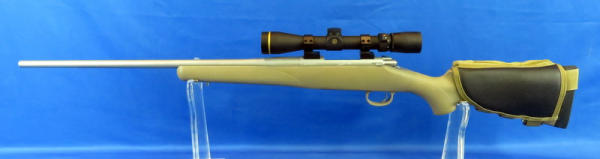 looks mint & unfired; 22" stainless barrel; light brown synthetic stock; cheek pad; Leupold VX-3i 2.5-8x36mm scope is very clear; removable clip; nice set-up; SN#KAA101112