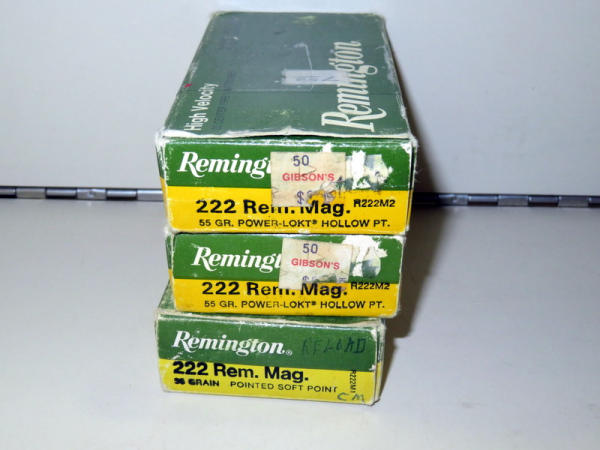 on HP box is half full but has the brass; bottom box is marked reloads; 49 rounds total; sell for one money