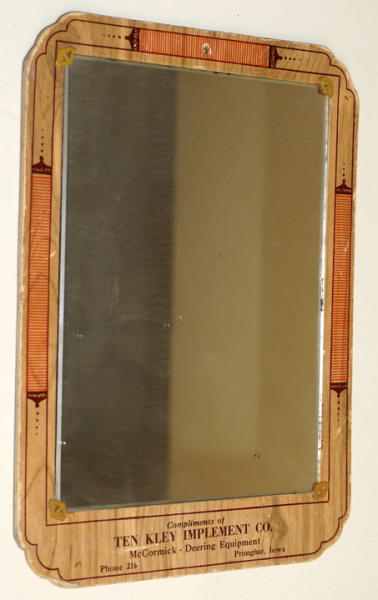 7"x9.5", mirror with a pressed wood frame, some general wear
