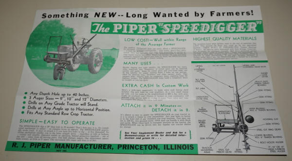 unique front mounted posthole digger, mailer that unfolds, some wear