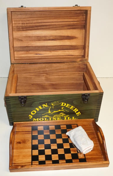 12"x18'x10", has a checkerboard inside, modern made, but very nice