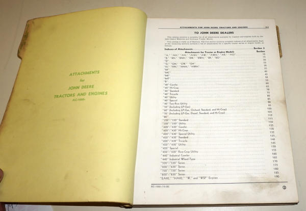 Loose leaf, about 1" thick, full of Letter Series, 2-digit series & 20-series accessories--3pt, front ends, fenders, etc., pretty nice original