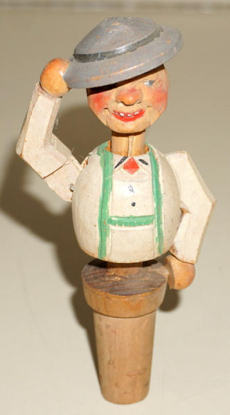 5" tall, has a pull string on the back to tip the hat, nice old piece